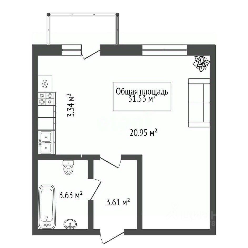 В квартире никто не прописан, один взрослый собственник. Расчёт в день сделки. Из кухни есть прямой выход на открытый балкон — идеальное место для утреннего кофе или вечернего отдыха.