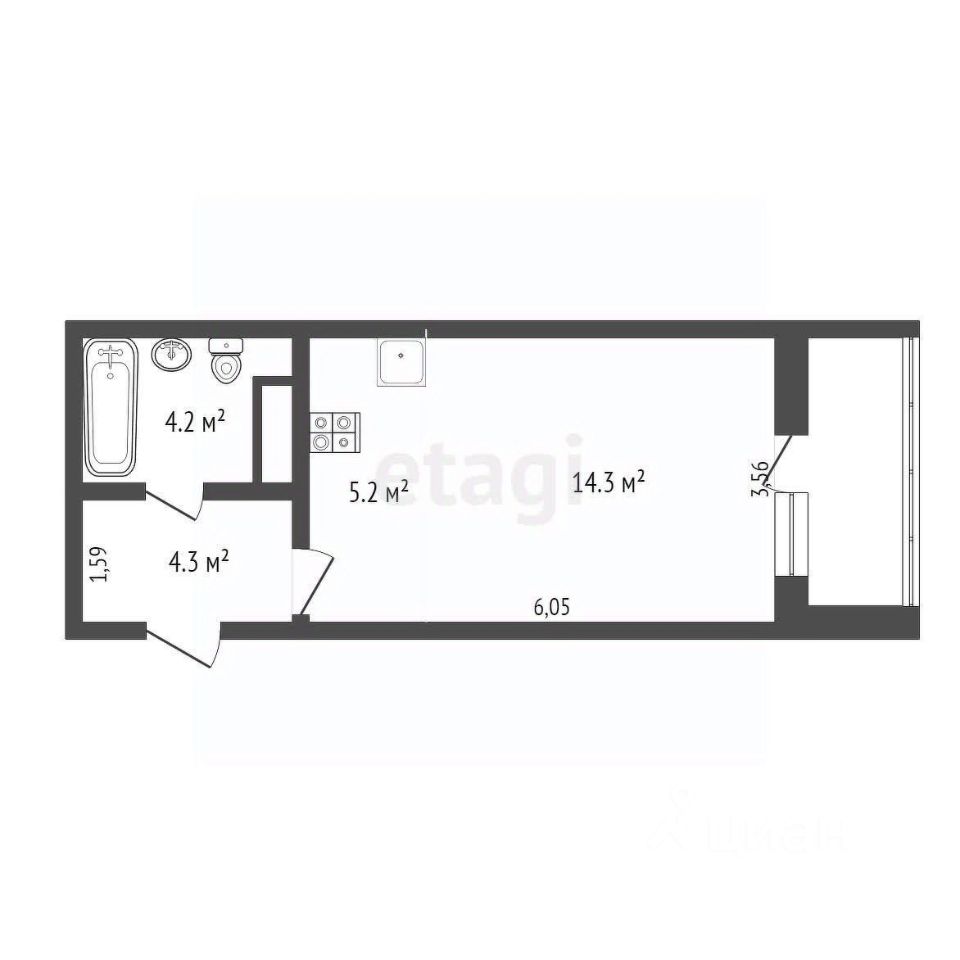 Вашему вниманию предлагается cтудия 30 м² с отличными видовыми характеристиками.