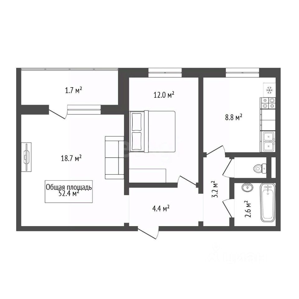 • Продуманная планировка: Две полностью изолированные комнаты обеспечат приватность каждому члену семьи.