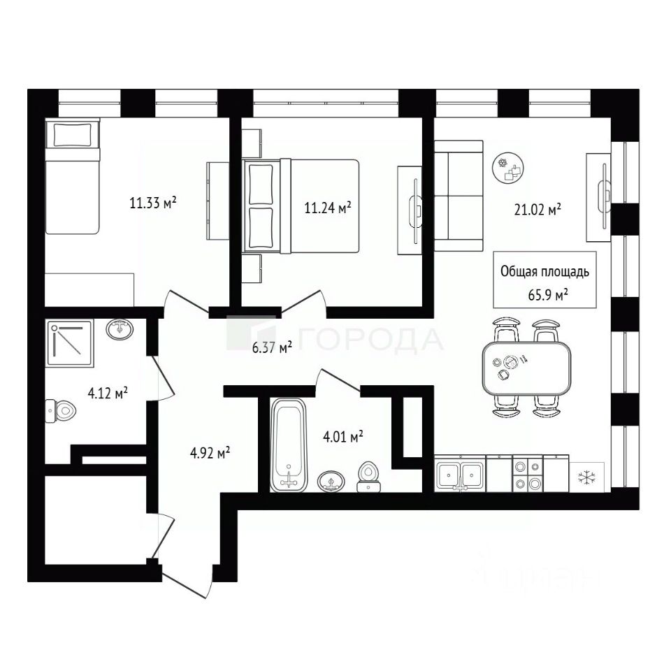 Площадь: 65,9 м²