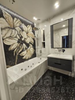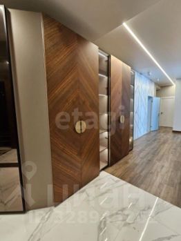 В квартире сделан новый дизайнерский ремонт с использованием дорогих качественных материалов. Планировка продумана до мелочей: три больших лоджии, санузел 3.5м2, санузел с ванной 6,8м2, спальня 14м2 + гардеробная 4,7м2, кабинет 16,5 м2, детская 19,4 м2, детская 17,3 м2, и даже гладильная комната. Квартира оснащена качественной мебелью, изготовленной по индивидуальному заказу. На кухне огромный холодильник, встроенная кофемашина и СВЧ печь, посудомоечная машина, духовка, варочная панель, измельчитель.