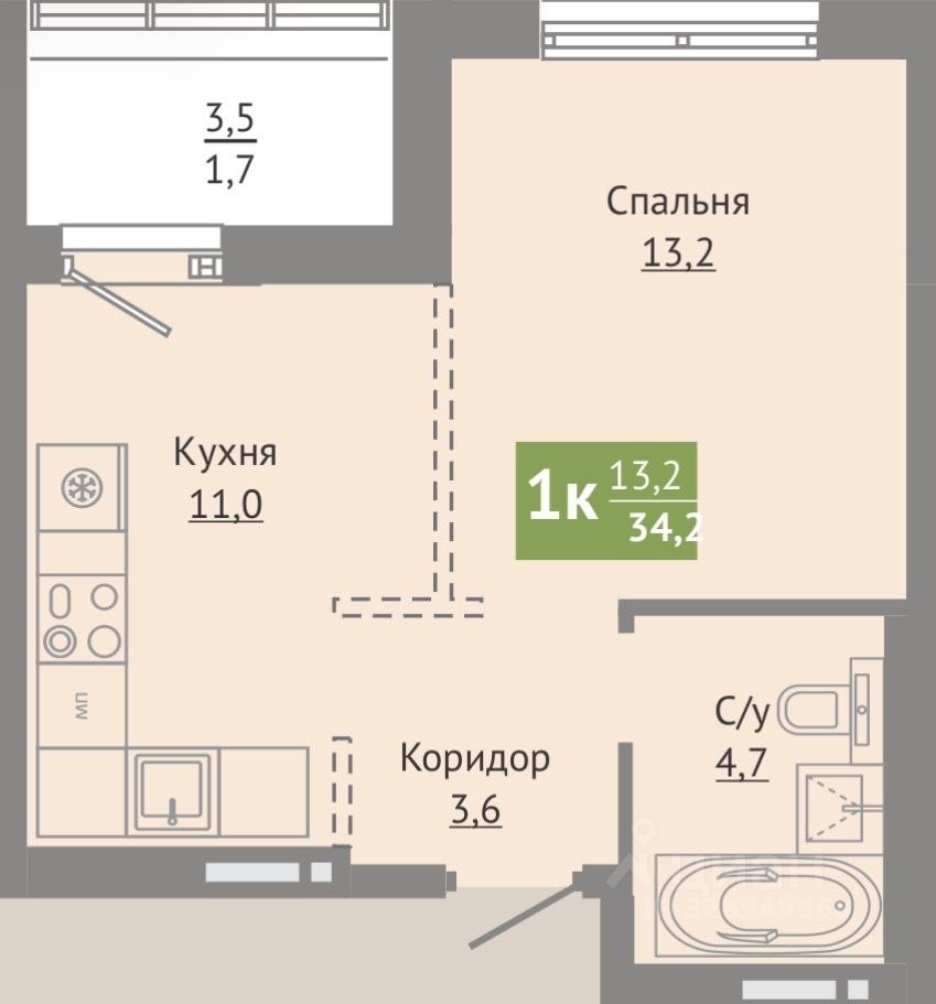 34,2 м²