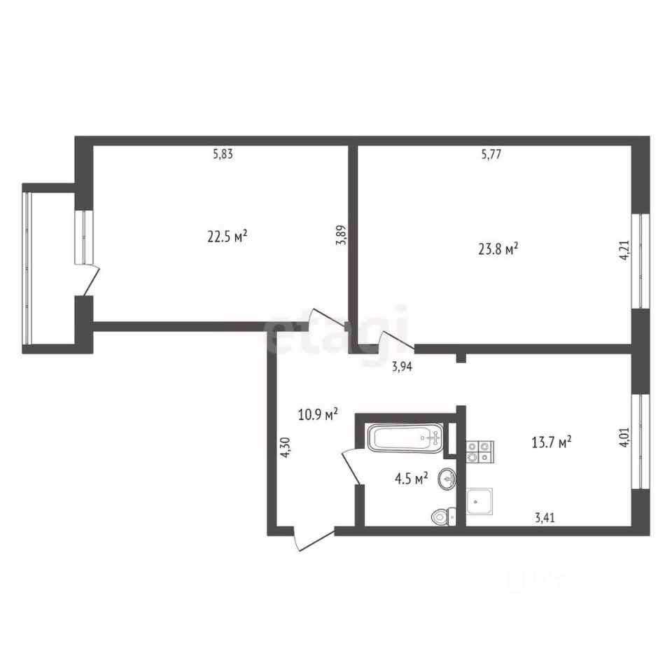 Вашему вниманию предлагается квартира с просторной планировкой: 2 большие комнаты 22,5 м² и 23,8 м², кухня 14 м², коридор 11 м². Окна на разные стороны дома - утром солнце в одной комнате, вечером в другой.