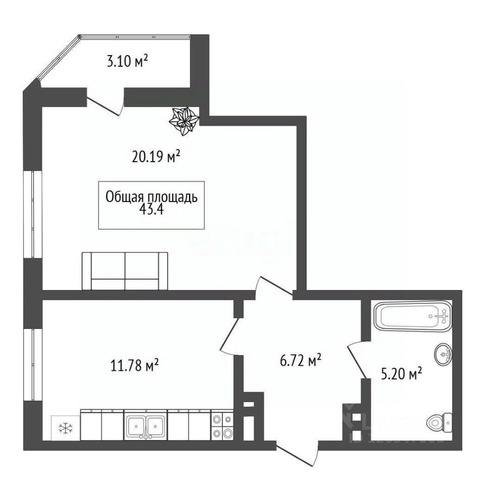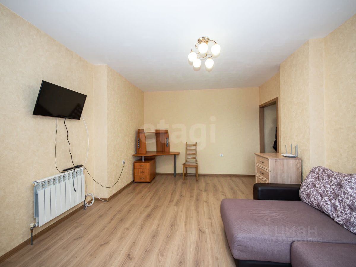 Полноценная однокомнатная квартира с огромной кухней и большой комнатой. Окна с панорамным видом выходят на южную сторону, квартира светлая и по настоящему тёплая.
