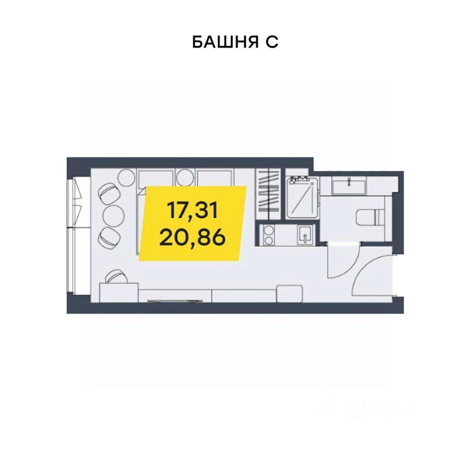 Общая площадь20,86 м²