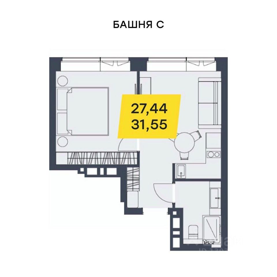 Общая площадь31,55 м²