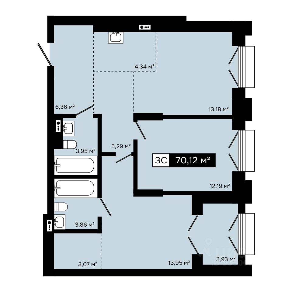 Продаётся 3-комнатная квартира в строящемся доме (Корпус А), срок сдачи: IV-кв. 2030, общей площадью 70.12 кв.м., на 13 этаже. СИМВОЛ УВЕРЕННОСТИ И УТОНЧЕННОГО ВКУСА