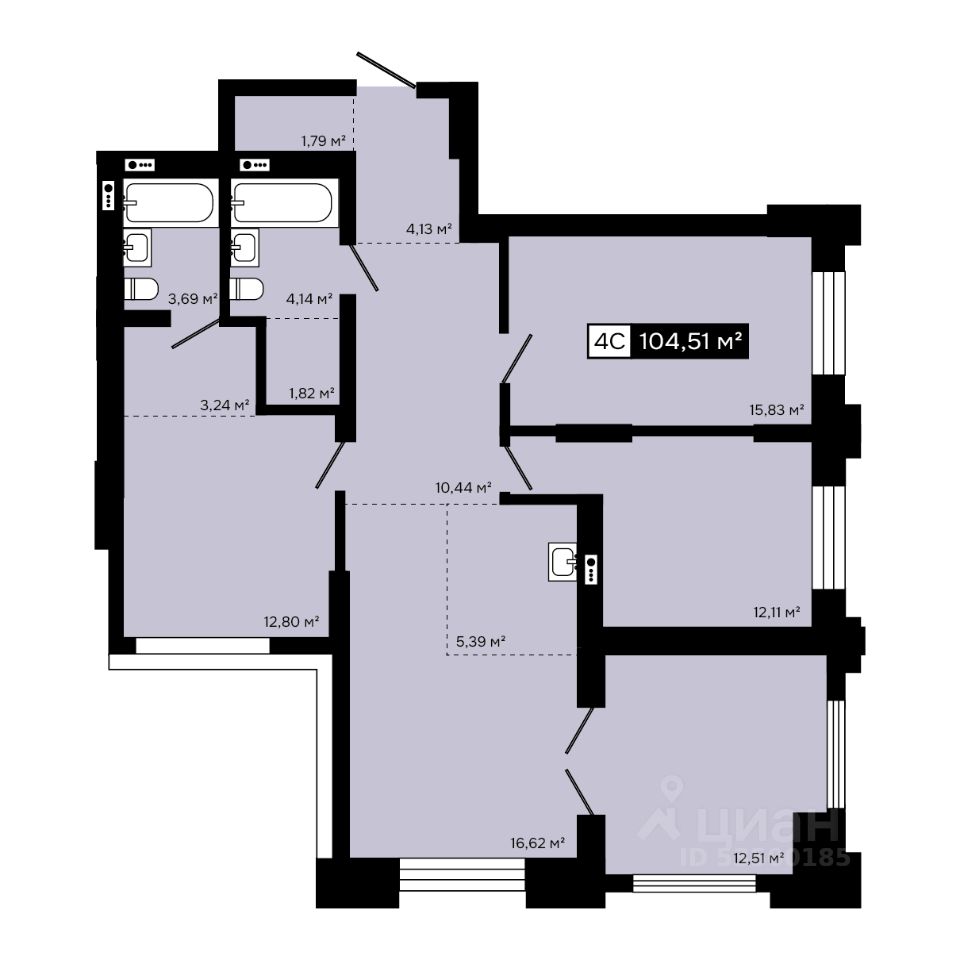 Продаётся 4-комнатная квартира в строящемся доме (Корпус А), срок сдачи: IV-кв. 2030, общей площадью 104.51 кв.м., на 16 этаже. СИМВОЛ УВЕРЕННОСТИ И УТОНЧЕННОГО ВКУСА