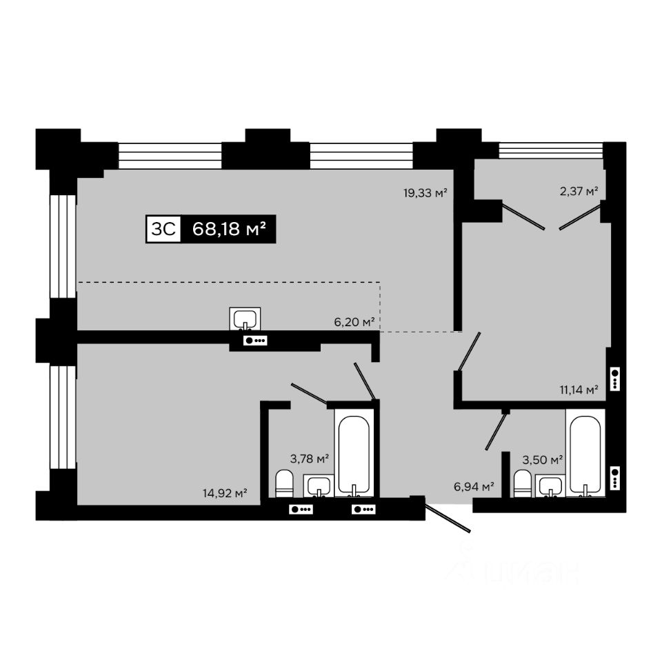 Продаётся 3-комнатная квартира в строящемся доме (Корпус А), срок сдачи: IV-кв. 2030, общей площадью 68.18 кв.м., на 16 этаже. СИМВОЛ УВЕРЕННОСТИ И УТОНЧЕННОГО ВКУСА