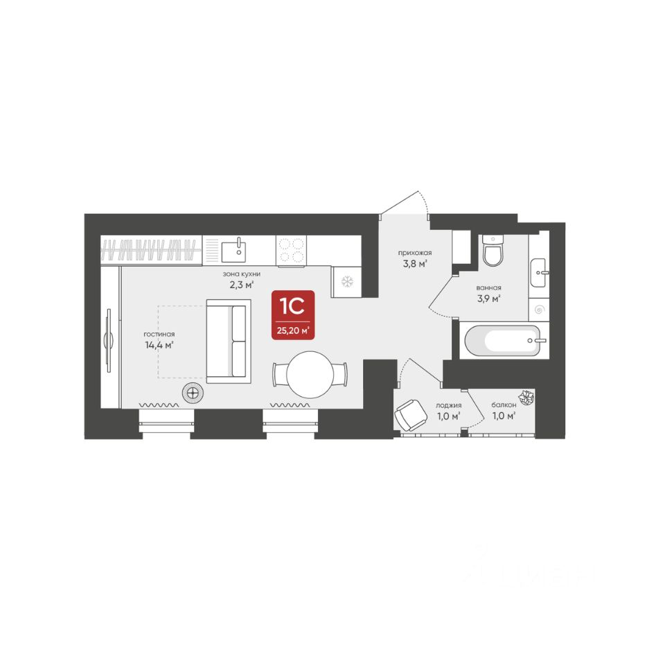 Продаётся студия в строящемся доме (Дом 1), срок сдачи: I-кв. 2026, общей площадью 25.2 кв.м., на 17 этаже.
