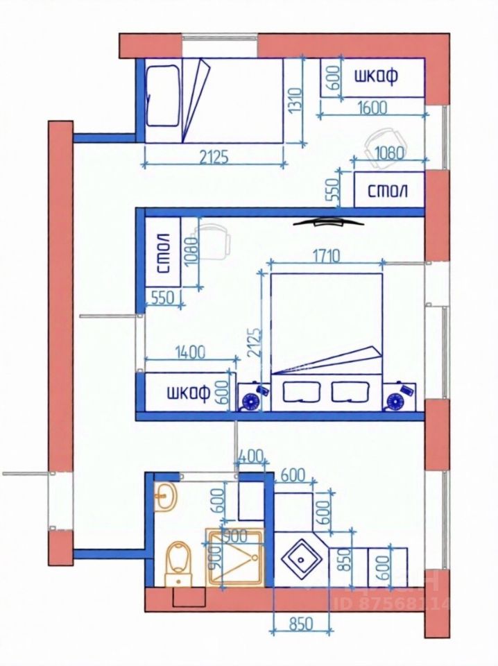 Раздельные комнаты (перепланировка узаконена).
