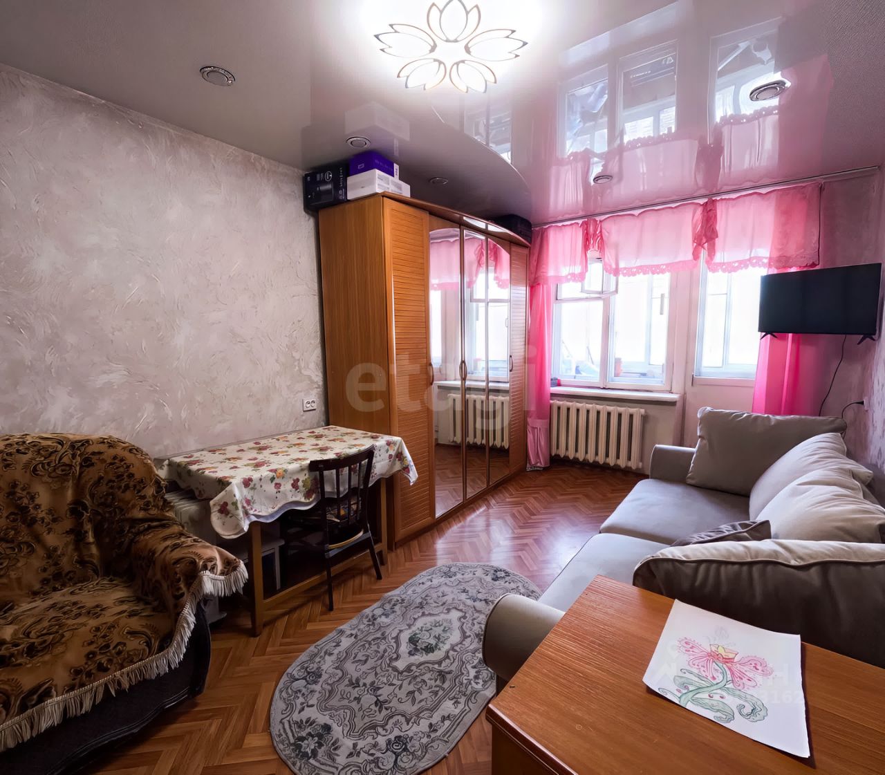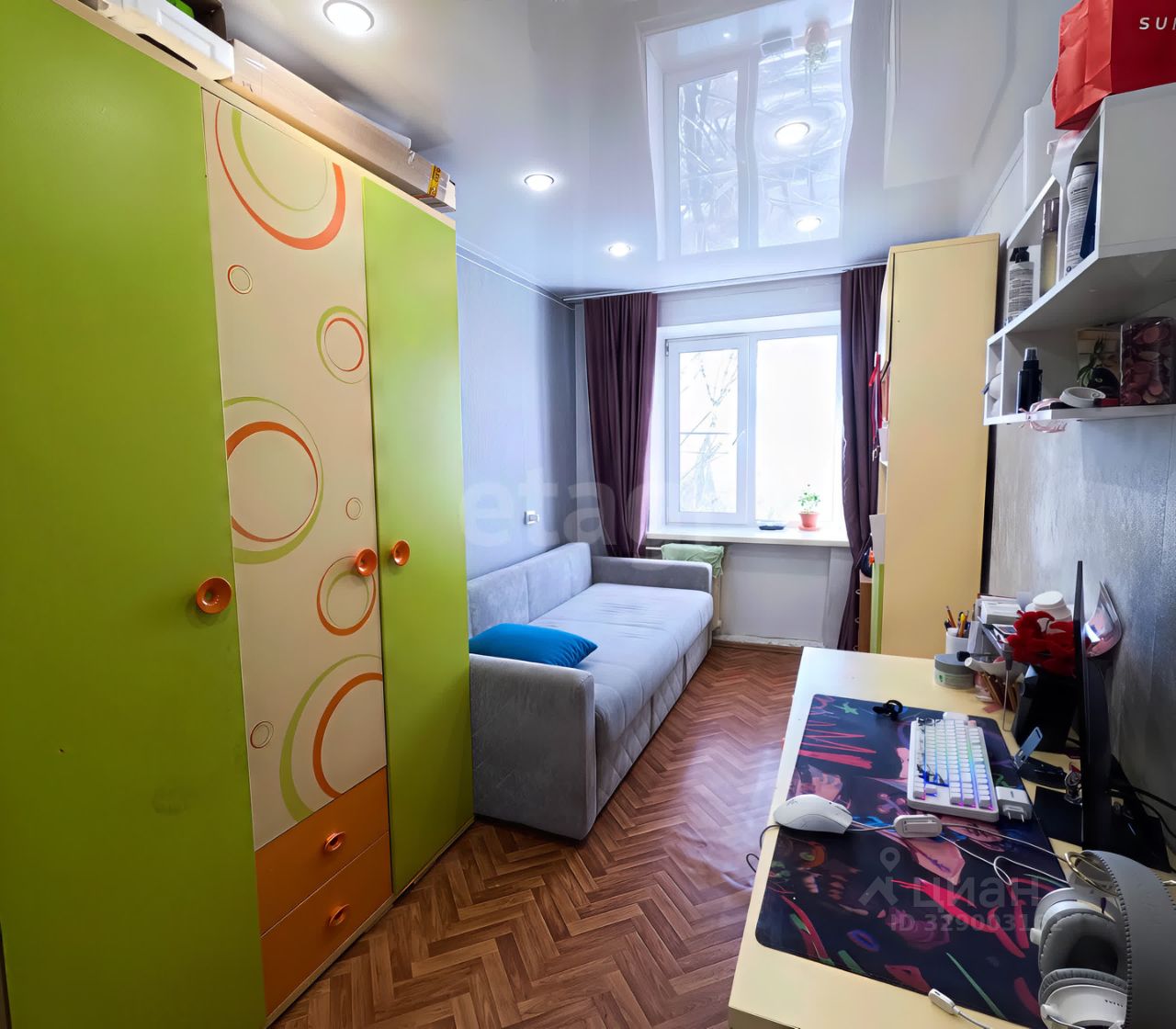 Во всей квартире произведена замена проводки и розеток, новые обои, везде натяжные потолки с точечным освещением.