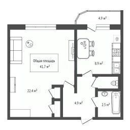 В квартире очень удобная планировка: просторная комната,а так же кухня и раздельный санузел.
