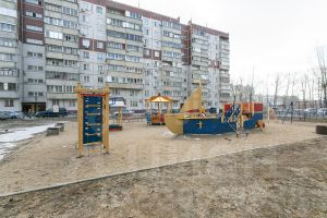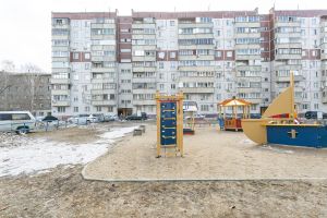 Во дворе дома благоустроенная территория с большой детской площадкой и достаточным количеством парковочных мест.