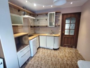 Остается вся мебель для хранения, что есть на фото, а также кухонный гарнитур с техникой, кухонный стол и стулья, ванна тоже укомплектована, остается установить только стиральную машину. Соседей с боку нет, квартира используется в качестве колясочной, что является большим плюсом.