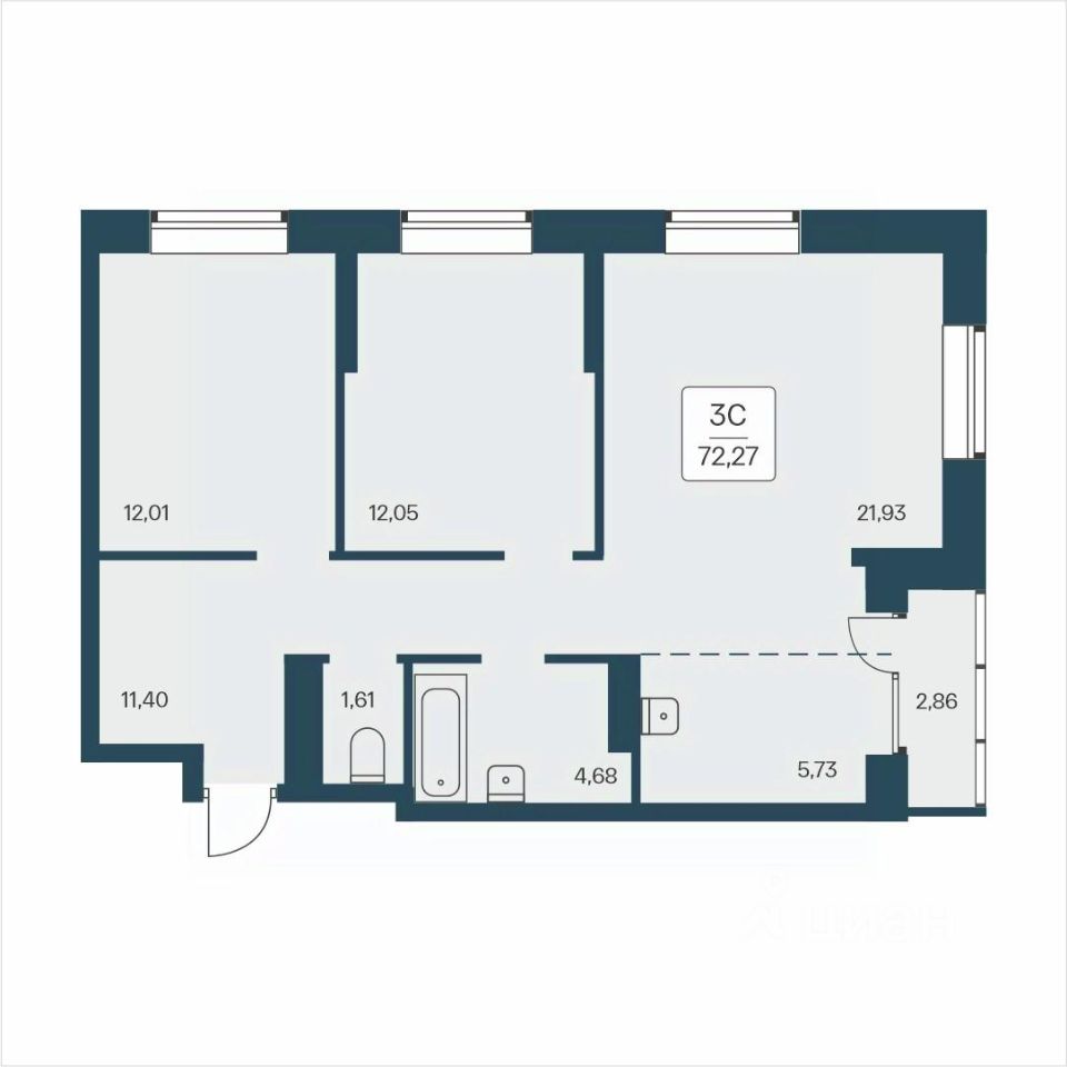 Общая площадь72,27 м²