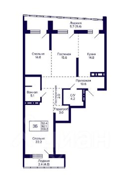 +Большая площадь более 100 квадратов- это самая просторная планировка в ЖК