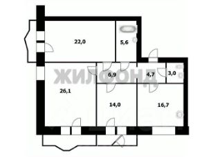 три спальни (26,1 м2, 14 и 12,2 м2), из большой спальни выход на застекленную лоджию, и смежных спален- также выход на лоджию.