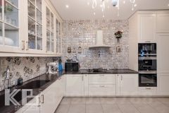 Кухонная зона 30 кв.м. удобно расположена рядом с гостиной. Полностью укомплектована встроенной итальянской техникой. Кухонный мебельный гарнитур выполнен вручную из немецких фасадов.