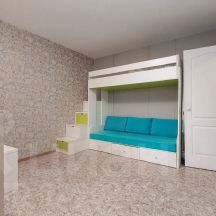 В комнате установлены удобные кровати, а также вместительные шкафы для хранения вещей. Санузел совмещенный, оформлен плиткой с оригинальным дизайном, установлен бойлер для горячей воды.