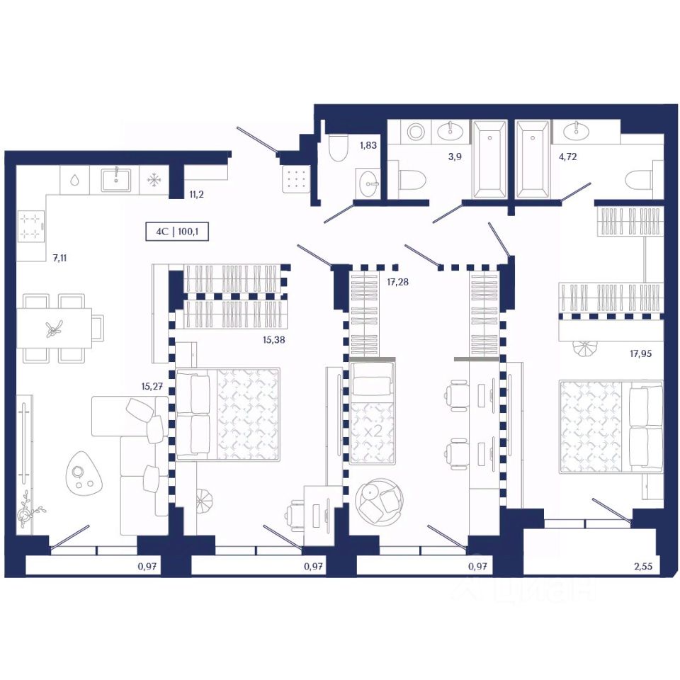 Общая площадь100,1 м²