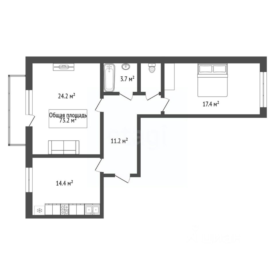 В продаже просторная двухкомнатная квартира в жилом комплексе Бавария поселка Краснообск.