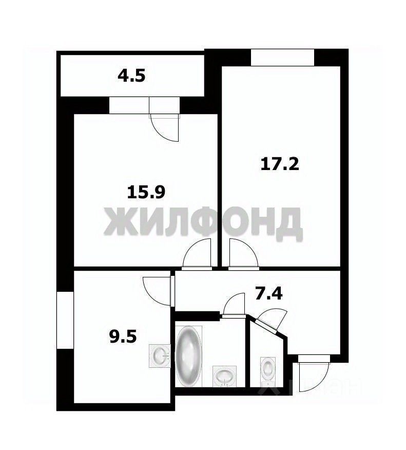 Удобная планировка квартиры: изолированные просторные комнаты 15,86м2 и 17,24м2 большая лоджия 4, 52м2, просторная кухня 9,5 м2 и просторная прихожая 7,35 м2, раздельный сан. узел.