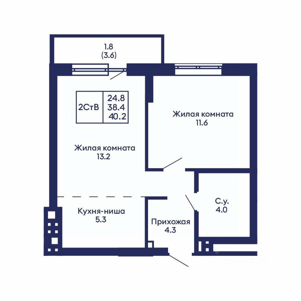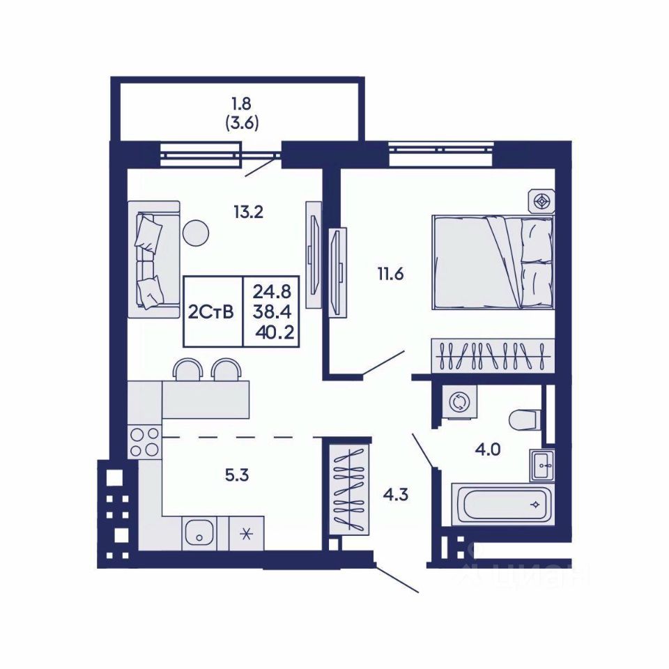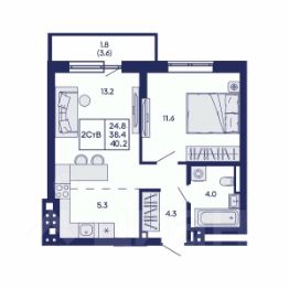 Общая площадь40,2 м²