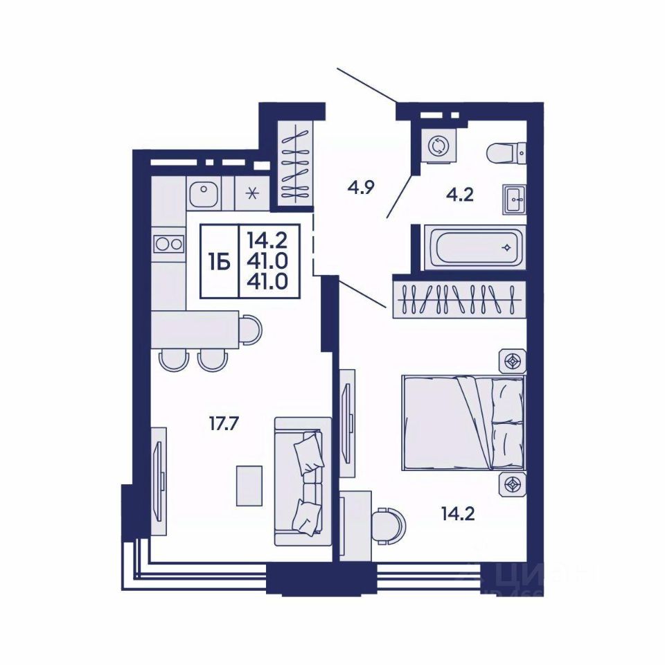 Продаётся 1-комнатная квартира в сданном доме (Дом 1), срок сдачи: IV-кв. 2025, общей площадью 41 кв.м., на 3 этаже. Жилой квартал "Сподвижники" от компании Vira.