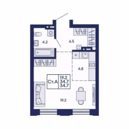 Продаётся 1-комнатная квартира в сданном доме (Дом 1), срок сдачи: IV-кв. 2025, общей площадью 34.7 кв.м., на 4 этаже. Жилой квартал "Сподвижники" от компании Vira.