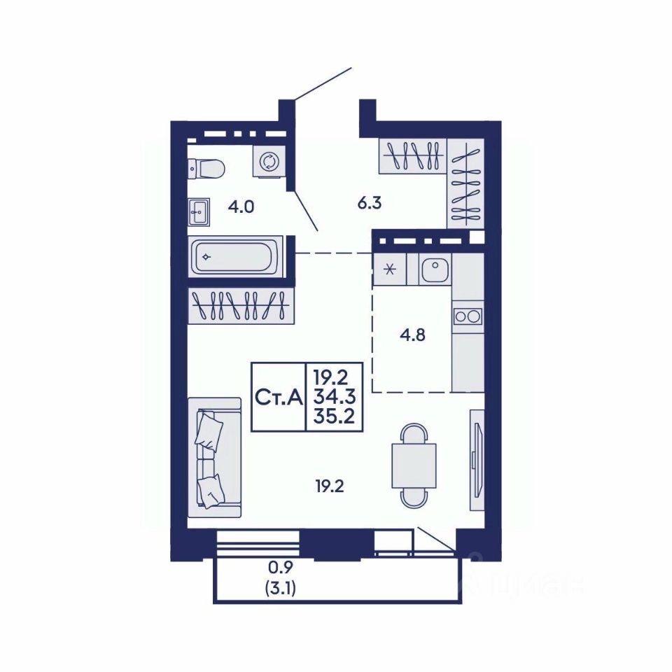 Продаётся 1-комнатная квартира в сданном доме (Дом 1), срок сдачи: IV-кв. 2025, общей площадью 37.1 кв.м., на 9 этаже. Жилой квартал "Сподвижники" от компании Vira.