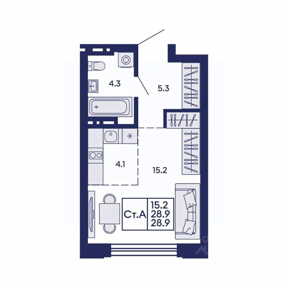 Продаётся студия в сданном доме (Дом 1), срок сдачи: IV-кв. 2025, общей площадью 28.9 кв.м., на 6 этаже. Жилой квартал "Сподвижники" от компании Vira.