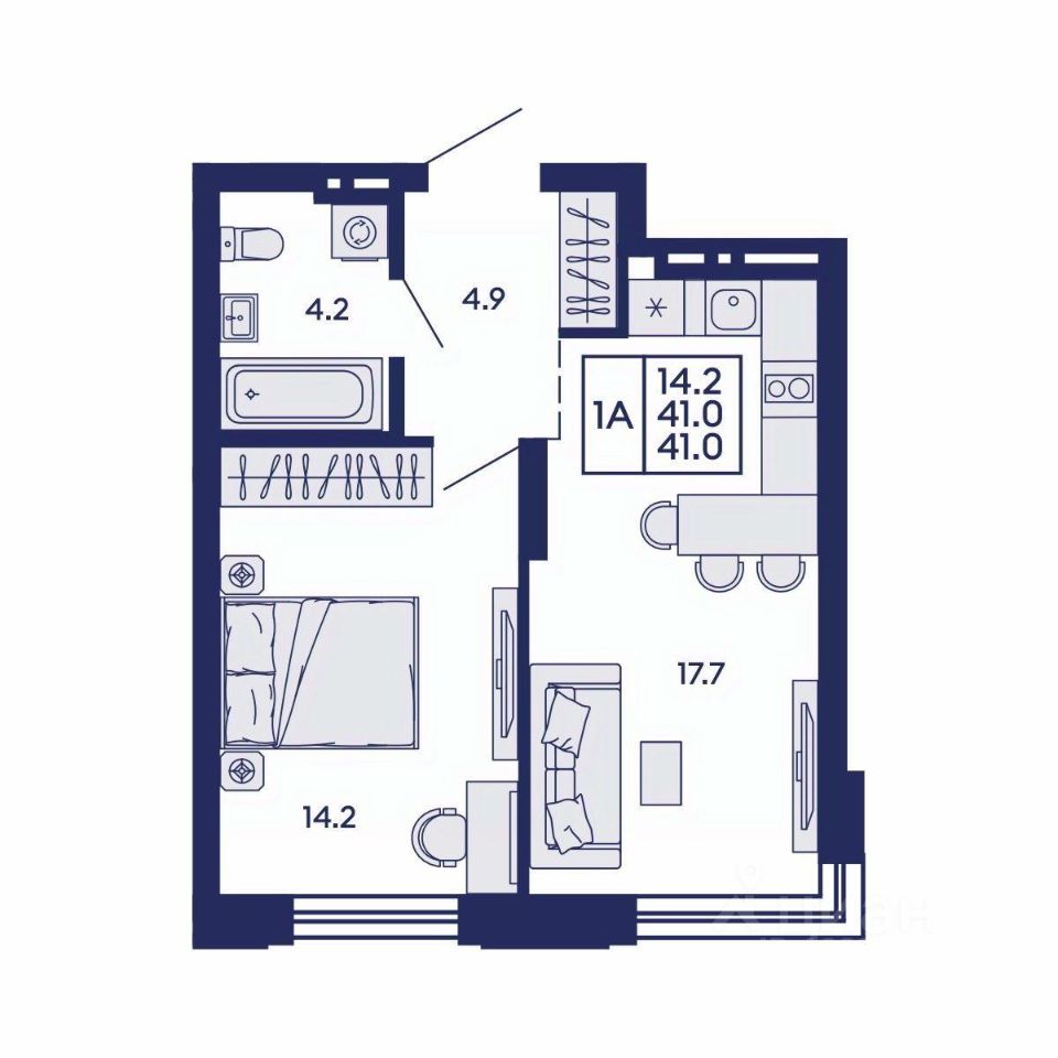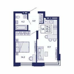 Продаётся 1-комнатная квартира в сданном доме (Дом 1), срок сдачи: IV-кв. 2025, общей площадью 41 кв.м., на 6 этаже. Жилой квартал "Сподвижники" от компании Vira.