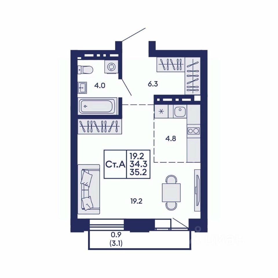 Продаётся 1-комнатная квартира в сданном доме (Дом 1), срок сдачи: IV-кв. 2025, общей площадью 35.2 кв.м., на 12 этаже. Жилой квартал "Сподвижники" от компании Vira.
