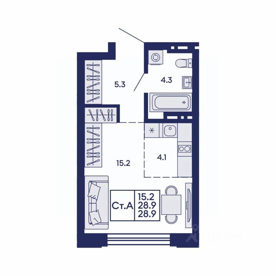 Общая площадь28,9 м²