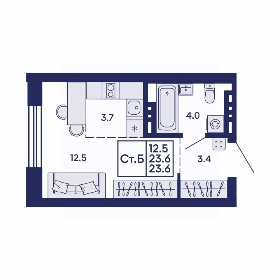 Продаётся студия в строящемся доме (Дом 2), срок сдачи: I-кв. 2028, общей площадью 23.6 кв.м., на 8 этаже. Жилой квартал "Сподвижники" от компании Vira.