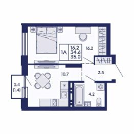 Продаётся 1-комнатная квартира в строящемся доме (Дом 2), срок сдачи: I-кв. 2028, общей площадью 35 кв.м., на 12 этаже. Жилой квартал "Сподвижники" от компании Vira.