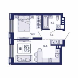 Продаётся 1-комнатная квартира в строящемся доме (Дом 2), срок сдачи: I-кв. 2028, общей площадью 35.9 кв.м., на 2 этаже. Жилой квартал "Сподвижники" от компании Vira.