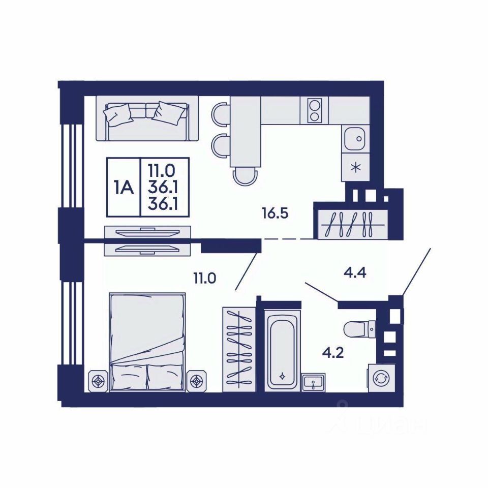 Продаётся 1-комнатная квартира в строящемся доме (Дом 2), срок сдачи: I-кв. 2028, общей площадью 36.1 кв.м., на 3 этаже. Жилой квартал "Сподвижники" от компании Vira.