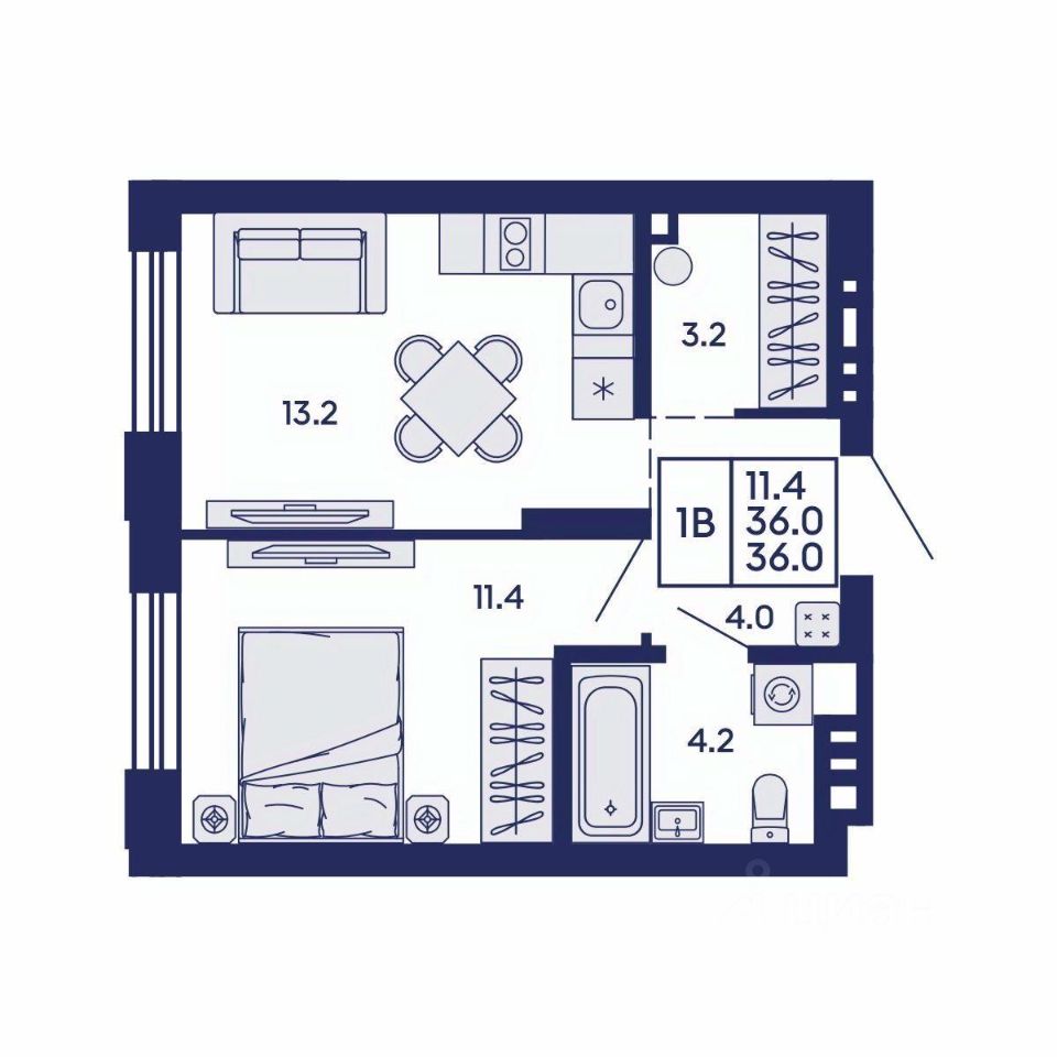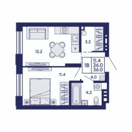 Продаётся 1-комнатная квартира в строящемся доме (Дом 2), срок сдачи: I-кв. 2028, общей площадью 36 кв.м., на 4 этаже. Жилой квартал "Сподвижники" от компании Vira.
