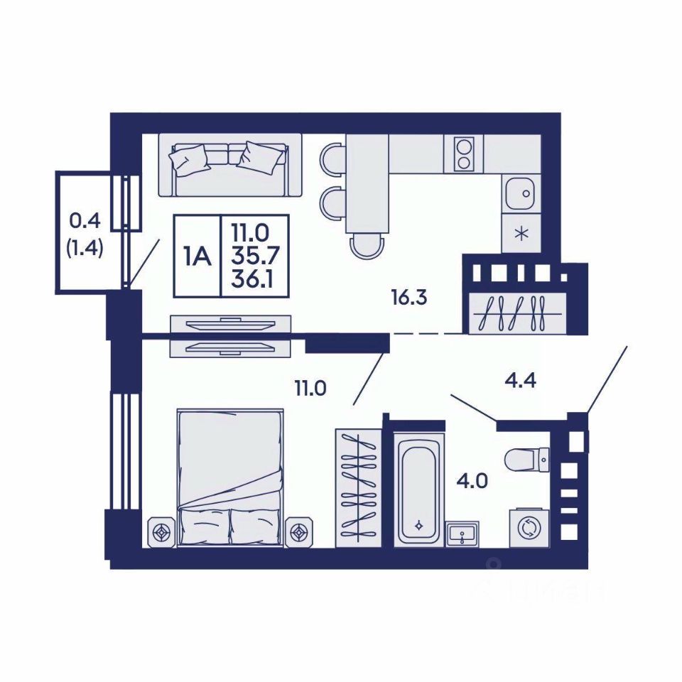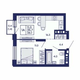 Продаётся 1-комнатная квартира в строящемся доме (Дом 2), срок сдачи: I-кв. 2028, общей площадью 36.1 кв.м., на 8 этаже. Жилой квартал "Сподвижники" от компании Vira.