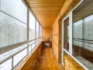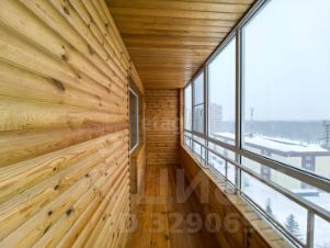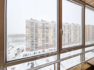 К кухне через широкое окно примыкает застекленная лоджия площадью 7,6 кв. м, не учитываемая в общей площади, что расширяет полезное пространство для хранения или отдельное место для отдыха.