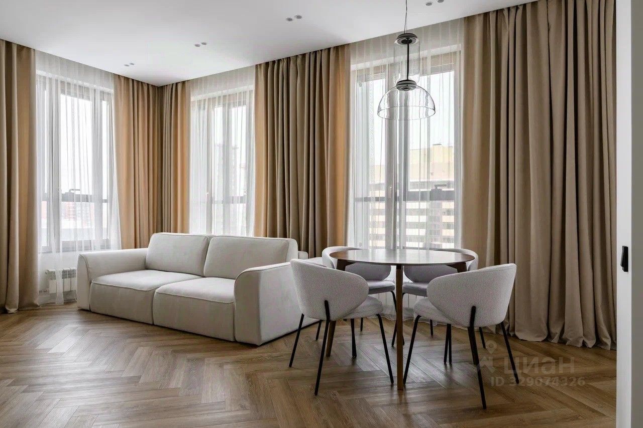 Изолированные спальни и кухня-гостиная на две стороны дома с видом на город. Высокие потолки 3 м., встроенные функциональные шкафы, продуманная гардеробная.