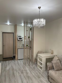 Квартира-студия с современным ремонтом не требующая вложений! На полу ламинат 34 класса, стены под покраску, сан узел и пол на лоджии керамическая плитка.