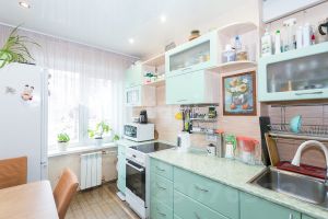 В квартире остаётся вся мебель (шкафы, кухня,диваны,столы - по договорённости можем вывести).