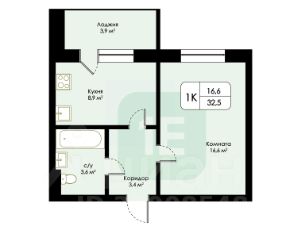 В продаже полноценная однокомнатная квартира.
