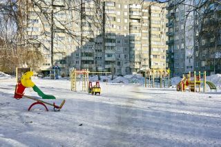 Школа и детский сад в соседнем дворе.