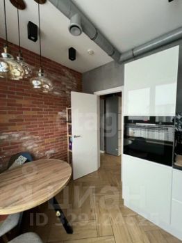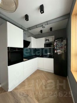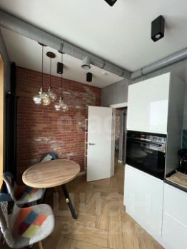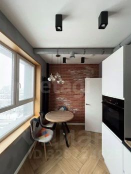 Кухня оборудована современной техникой, включая встроенный духовой шкаф и вытяжку.