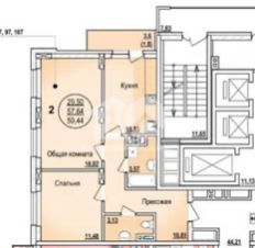 Общая площадь квартиры составляет 59,4 кв. м, из которых 29,5 кв. м — жилая площадь. Высота потолков — 2,7 м, что создаёт ощущение простора и свободы. Санузел раздельный, окна выходят во двор и на улицу, а наличие лоджии позволяет наслаждаться видом и свежим воздухом.