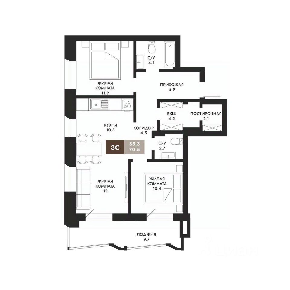 Общая площадь70,5 м²